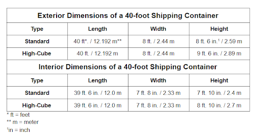 40' Shipping Container Dimensions